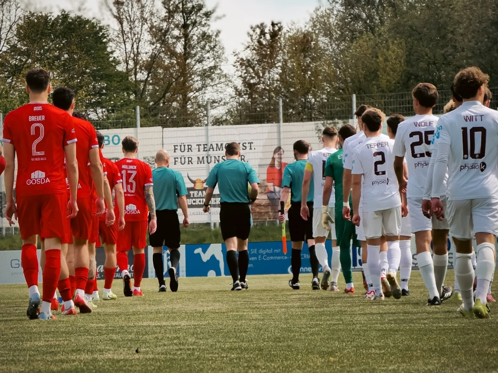 Von Beginn an entwickelte sich eine intensive Partie, in der beide Mannschaften keinen Zentimeter herschenkten. Gievenbeck kam zunächst etwas besser in die Begegnung und setzte mit zwei gefährlichen Abschlüssen erste Akzente. Doch auch Rot Weiss Ahlen fand zunehmend besser ins Spiel, übernahm phasenweise die Kontrolle und erspielte sich erste Möglichkeiten. Die beste Chance der Gäste im ersten Durchgang hatte Heider, der nach einem Eckball per Kopf nur knapp scheiterte. Insgesamt blieb es jedoch bei einem umkämpften, aber torlosen 0:0 zur Halbzeit.
