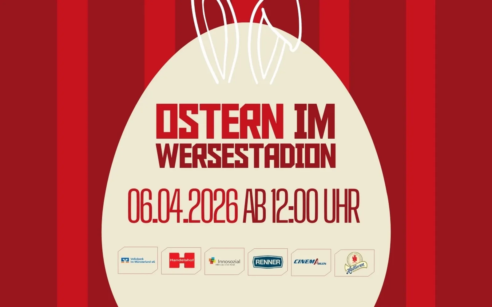 Auch in diesem Jahr lädt Rot Weiss Ahlen wieder alle kleinen Fußballfans und Oster-Entdecker zur großen Ostereiersuche ins Wersestadion ein. Am Ostermontag, 06. April, verwandelt sich unser Stadion in ein buntes Osterparadies – mit spannender Suche auf dem Spielfeld, tollen Gewinnen und echtem Heimspiel-Feeling.