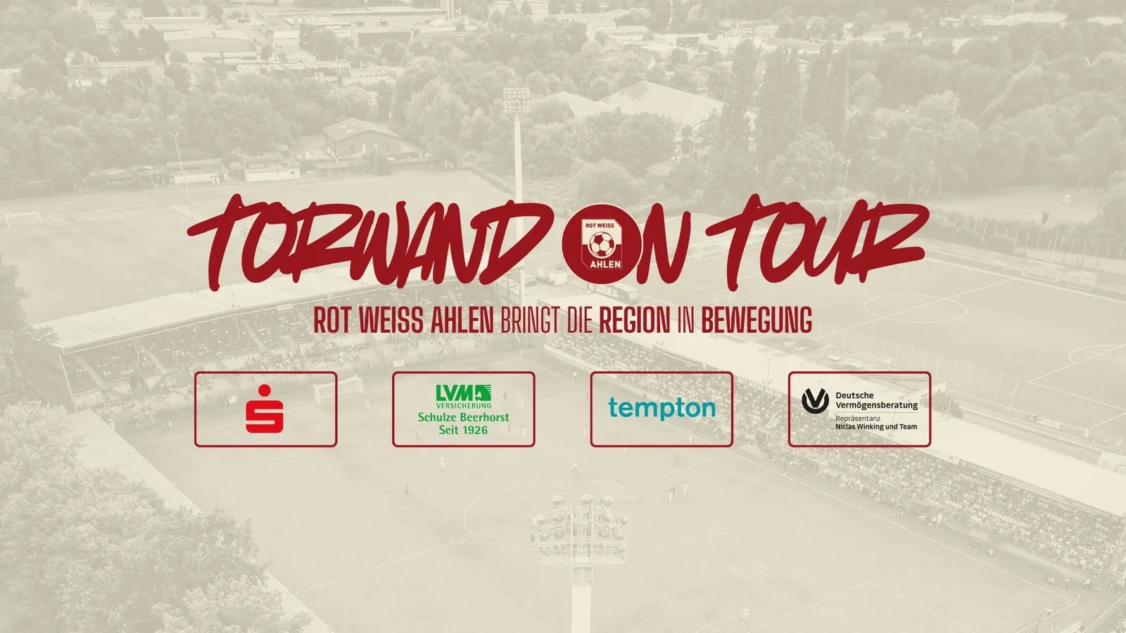 Rot Weiss Ahlen bringt die Fußballvereine der Region in Bewegung! Gemeinsam mit unseren Partnern Sparkasse Ahlen, Tempton Ahlen, DVAG Niklas Winking und LVM Schulze Beerhorst startet unser Verein in der Saison 2025/2026 die große Aktion „Torwand on Tour“.